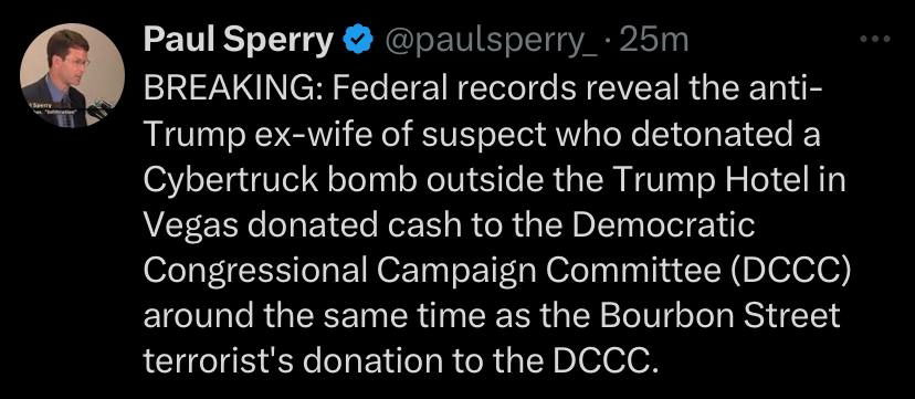 Who was in the torched Tesla cyber truck? We don’t know and we should. Matt Livelsberger, by virtue of his career with Special Forces, was required to submit DNA to the Army. The Department of Defense has that information. So, why in the hell are they pushing a story that the DNA from the corpse in the car did not match the DNA of Livelsberger’s son. This should be really simple — either the DNA from the corpse matches Lievelsberger’s or it doesn’t. Put this one in the pending file.