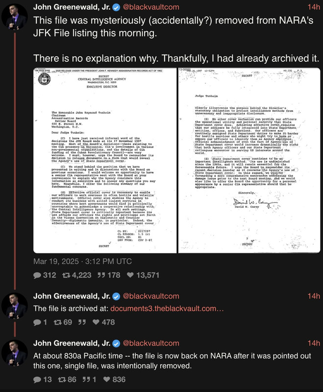 https://www.thegatewaypundit.com/2025/03/declassified-jfk-file-confirms-cia-rejected-lone-gunman/I think the headline is a little misleading. From what little I read of it, it sounds like they had their Florida offices looking into possible Cuban connections.
