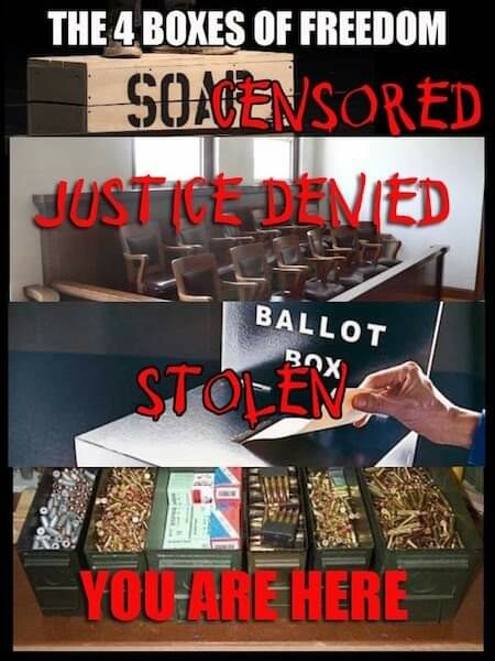 So the ballot box is gone. The courts block access to the jury box. That leaves the cartridge box.