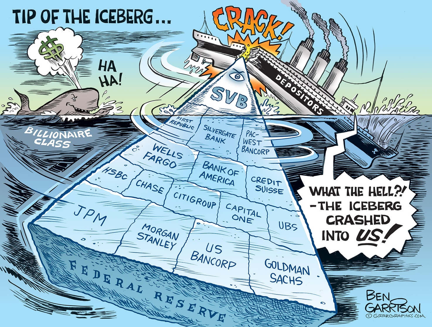 Yes, by bailing out stupidly managed banks and their BigTech buddies they have in fact triggered a de facto nationalization of the banking industry, one Fed-Head even made the insane comment "we have infinite cash"...this ends Fed tightening, the combination of reckless unaccountable government spending, wars, backfired sanctions, energy independence ending/sovereignty ending ESG/NetZero & WHO madness and endless corruption and incompetenece in politics and business ensures our fate is sealed to something far worse than Venezuela or Zimbabwe...thanks to each and every one of these assholes!