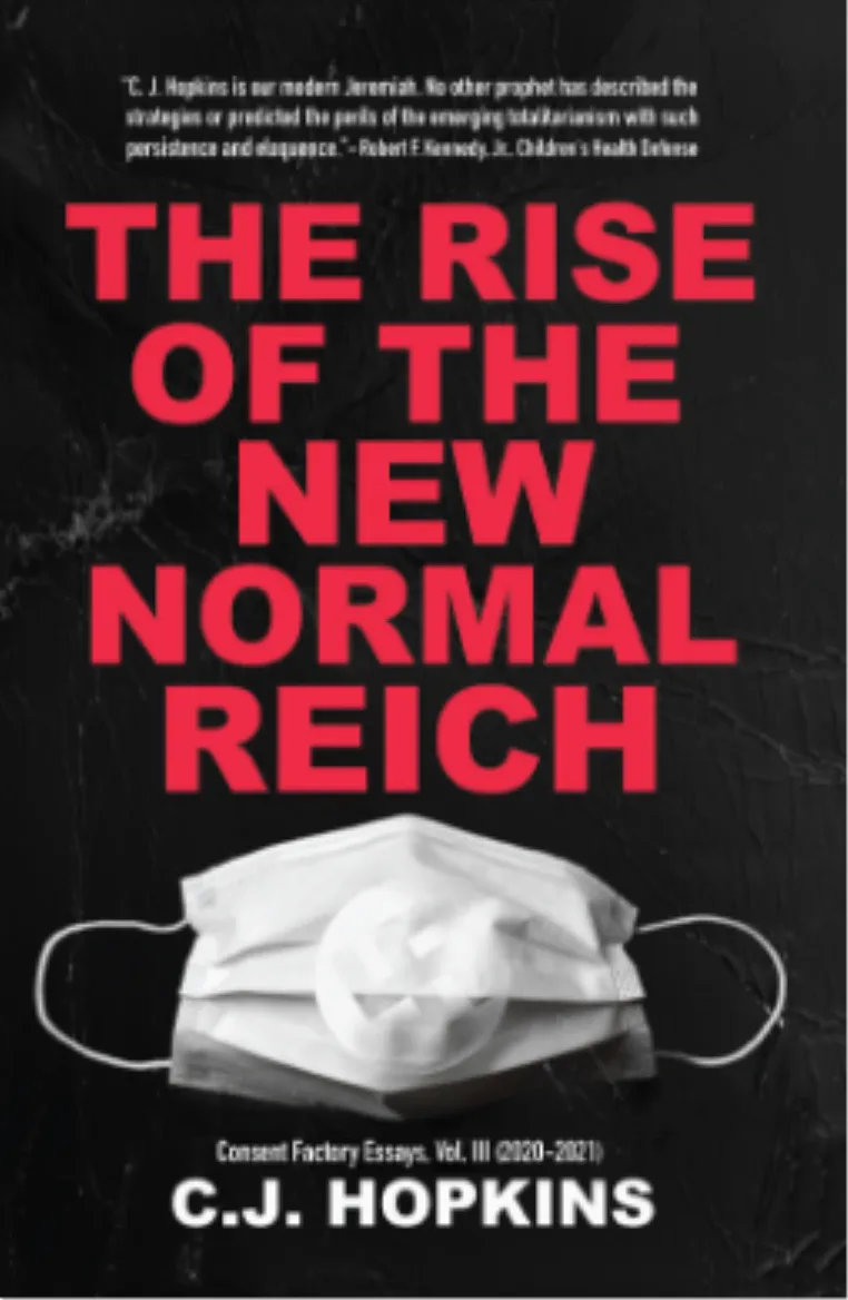 C.J. Hopkins can answer that. Following a similar case involving Roger Waters, the American playwright, Substack contributor, and editor of Consent Factory has been placed under investigation by a Berlin prosecutor for tweeting an image of his book, The Rise of the New Normal Reich. A scathing criticism of global pandemic policy, his cover features a white mask with a white swastika you have to squint to see:
